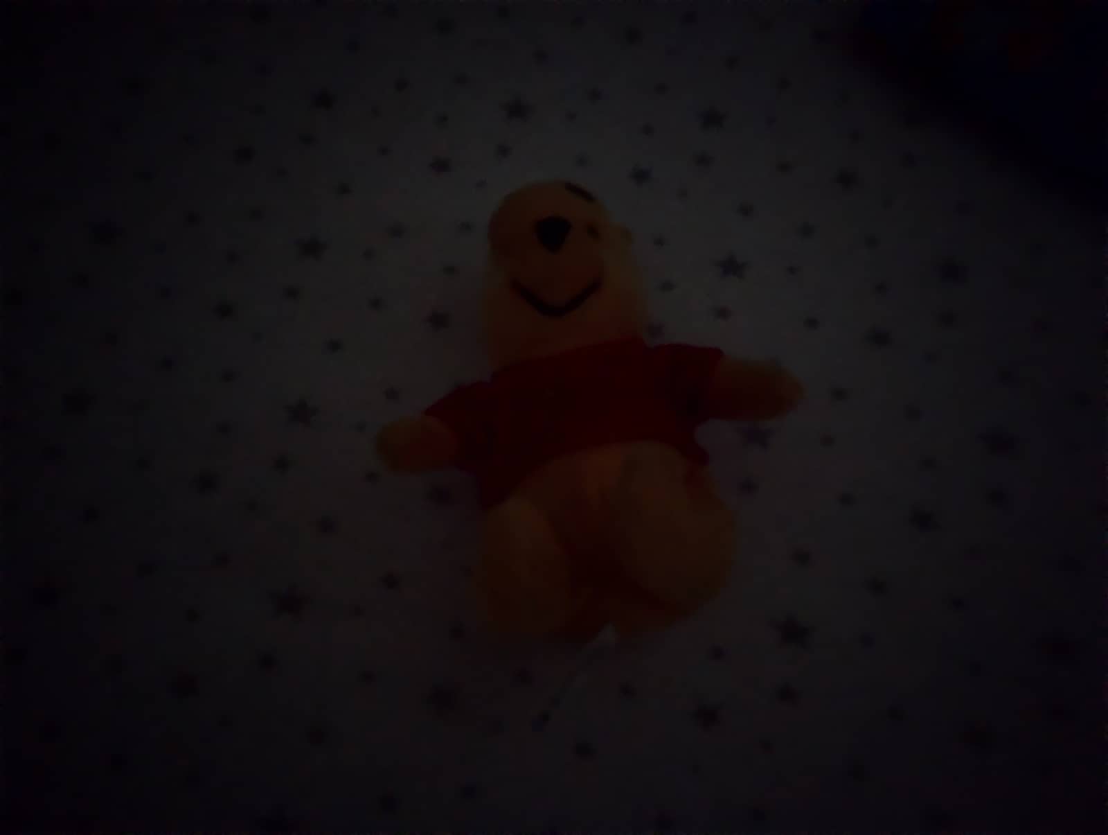 We captured a small plush of Winnie the Pooh without a lot of light, and regardless of whether night mode's stacking is switched on or not, you're not going to see Winnie in a good light, or any at all.