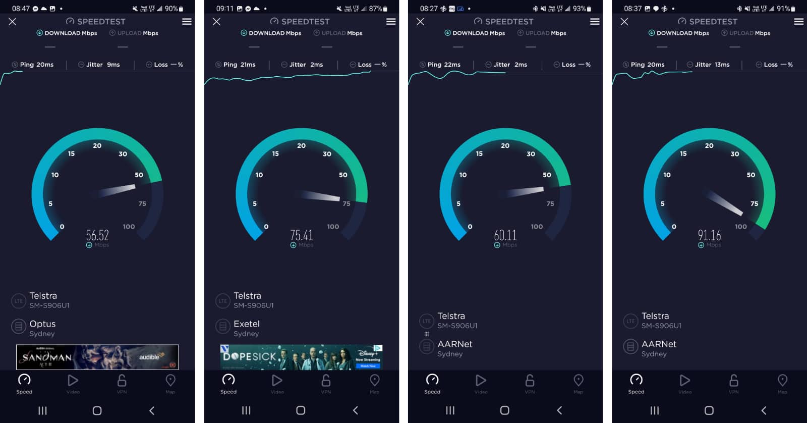 While we couldn’t quite test 5G on Australian Galaxy S22+ review models — more on that later — the 4G speeds we were able to find on Telstra’s network in Sydney were still acceptably strong, and suggest there’s plenty of mobile speed in the S22+ to go along with the system speed.