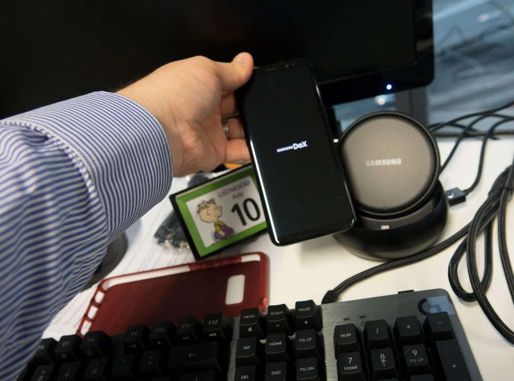 It has the rather unusual name of DeX which means “desktop replacement”, and this is basically Samsung’s interpretation of a smartphone dock. Unlike your conventional phone dock, this isn’t about playing music or videos, but rather doing work, connecting your phone to a keyboard, a mouse, and a screen and possibly wired network connection so you can be productive.