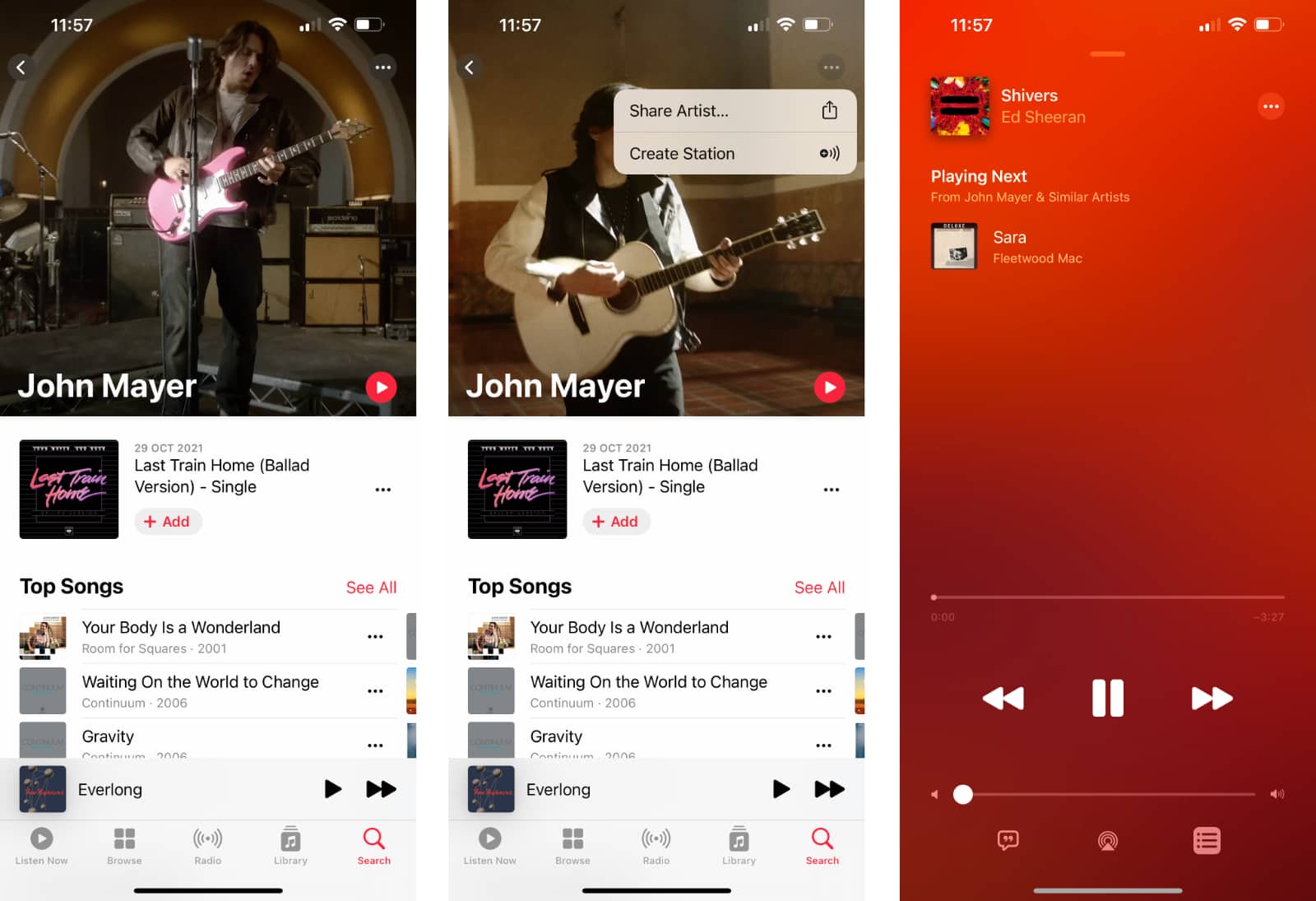 Starting a station on Apple Music is a similar process — find an artist or song you like, and then create a station — but you get a different outcome: rather than a list of songs, Apple is creating a rolling list of tracks like a station would.