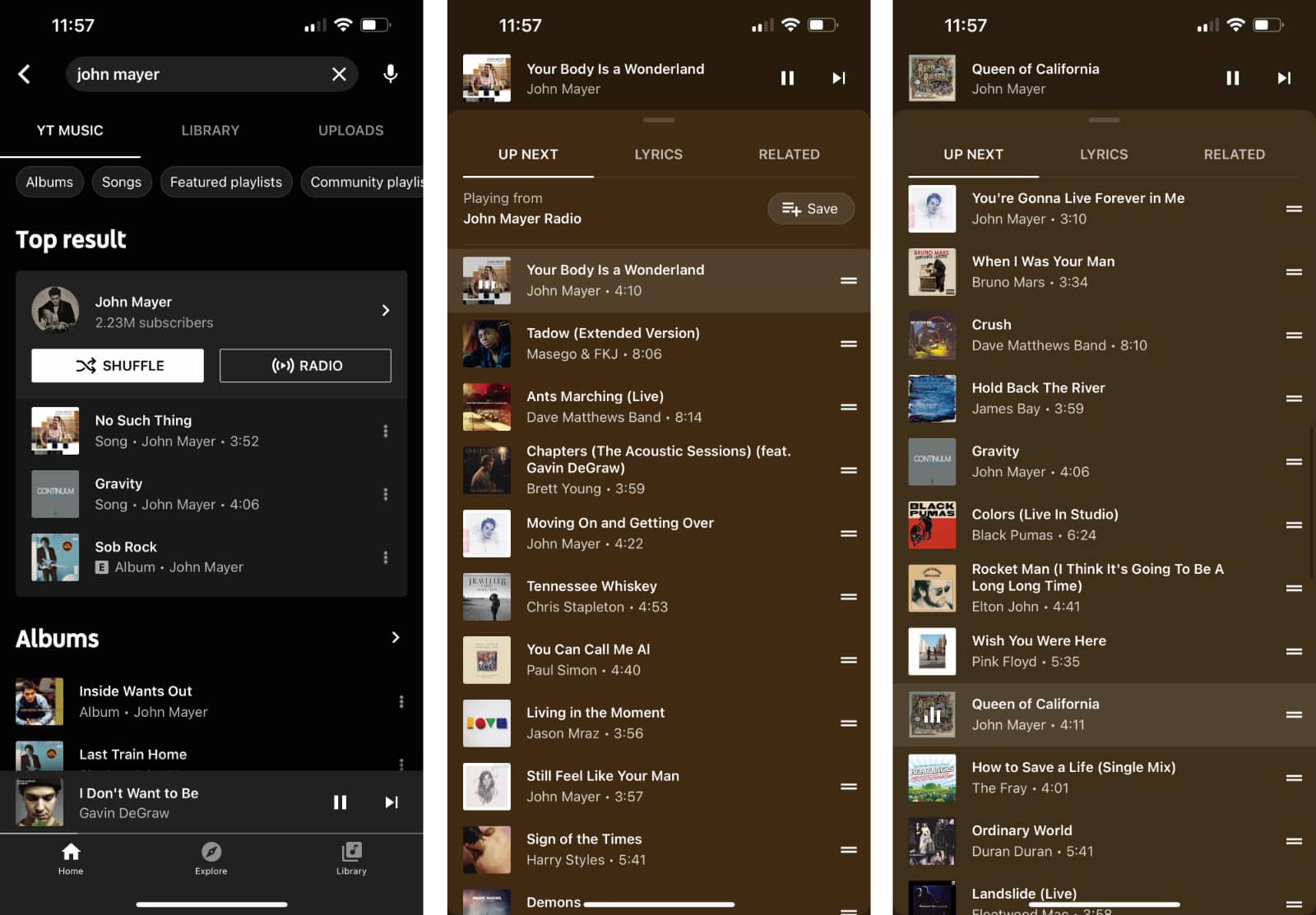 Tested again with John Mayer, not only did YouTube Music provide an actual list of similar music tracks, it also constantly added to itself, continuing a radio station past the three hour mark, something we struggled to get Spotify to do.