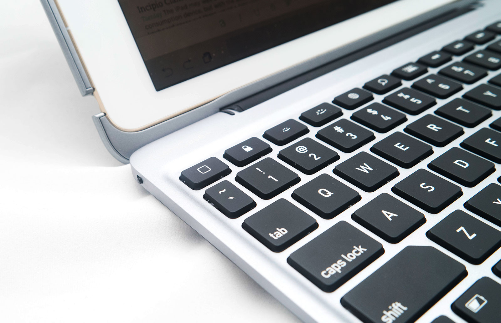 Incipio’s ClamCase Plus includes one of these, and does so with a decent amount of travel, allowing you to press down on the keys comfortably with each finger, depressing each key like you were using a real laptop keyboard.