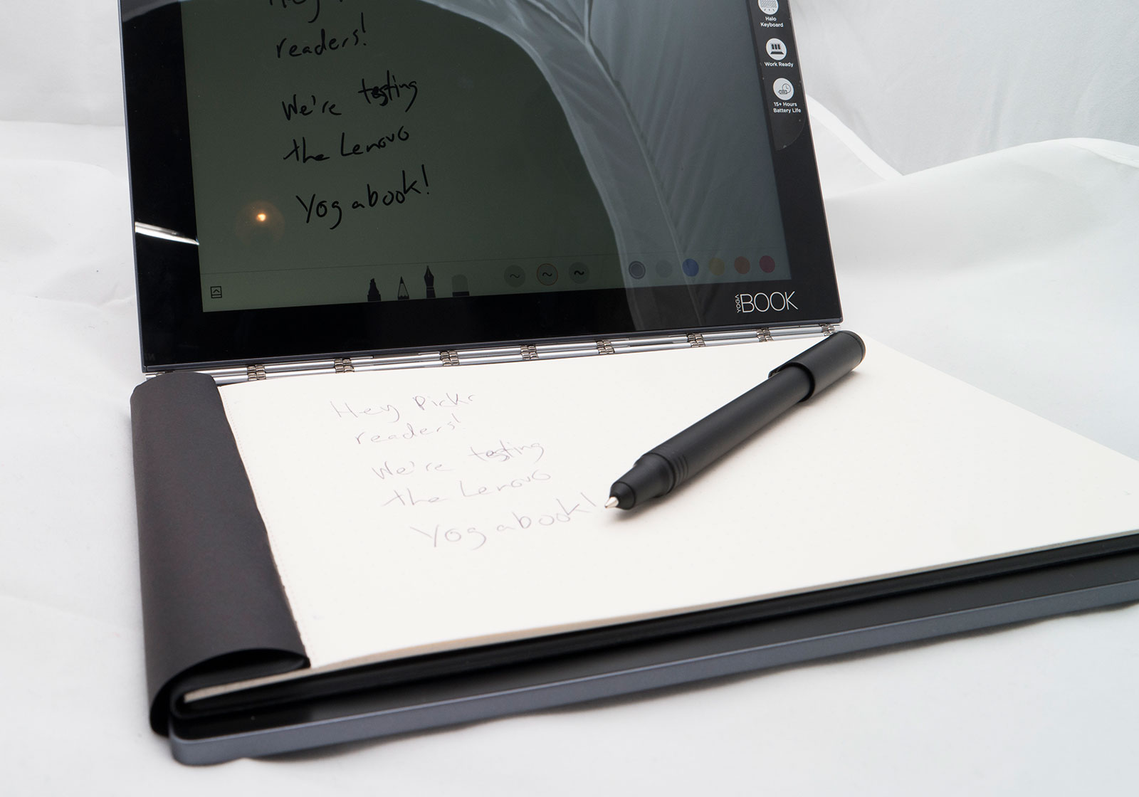 And thanks to how Lenovo has set this pen up, you can actually grab a sheet or two of paper, place it over the capacitive keyboard, and just scribble away, with the pen strokes being interpreted on screen like they would on a stylus.