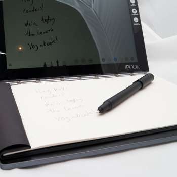 Lenovo does include the pen tip cartridges in the box, and it even includes a pad sized just for the tablet, so at least the company is catering for your needs, but you can bring your own paper if need be, and provided you use the side of the Yoga Book that doesn’t have a screen, you should be fine.