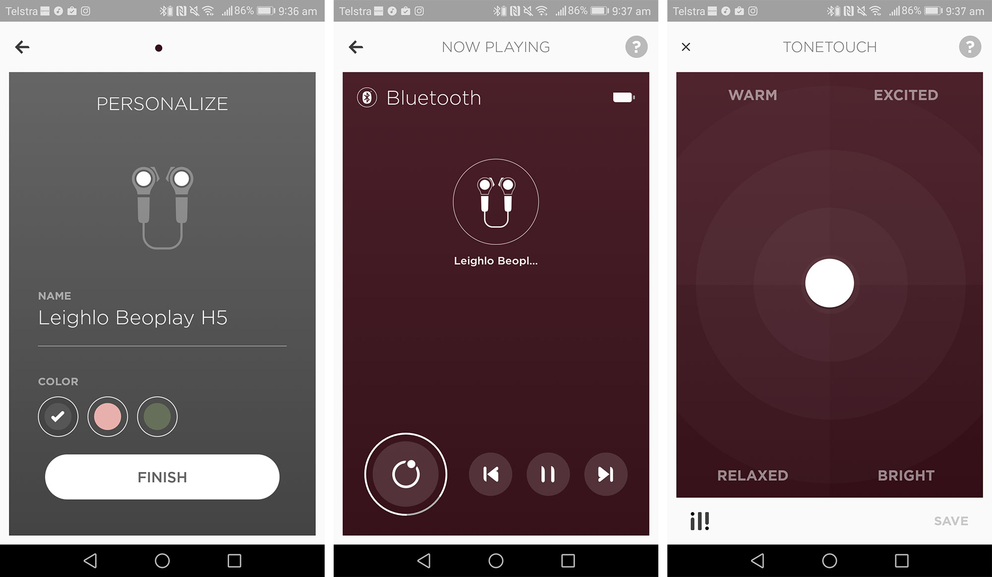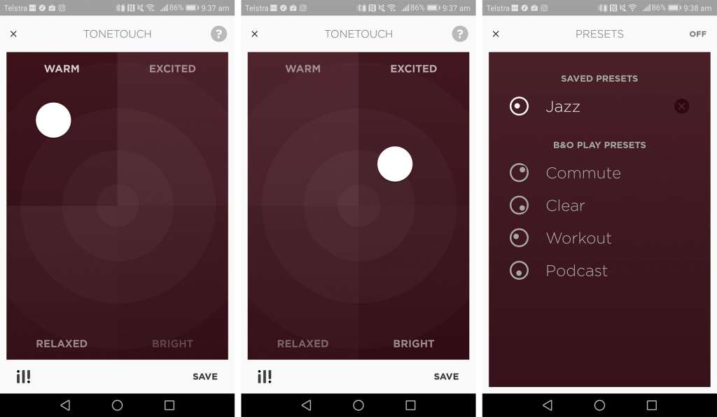 With the app installed, you can connect to your H5 earphones and change the personality slightly, making them warmer, more relaxed, brighter, or more excited, which in the B&O world basically means to either change the strength in mids, lows, or highs providing a slightly different sound dependent not just on what you’re doing, but what you might be listening to.