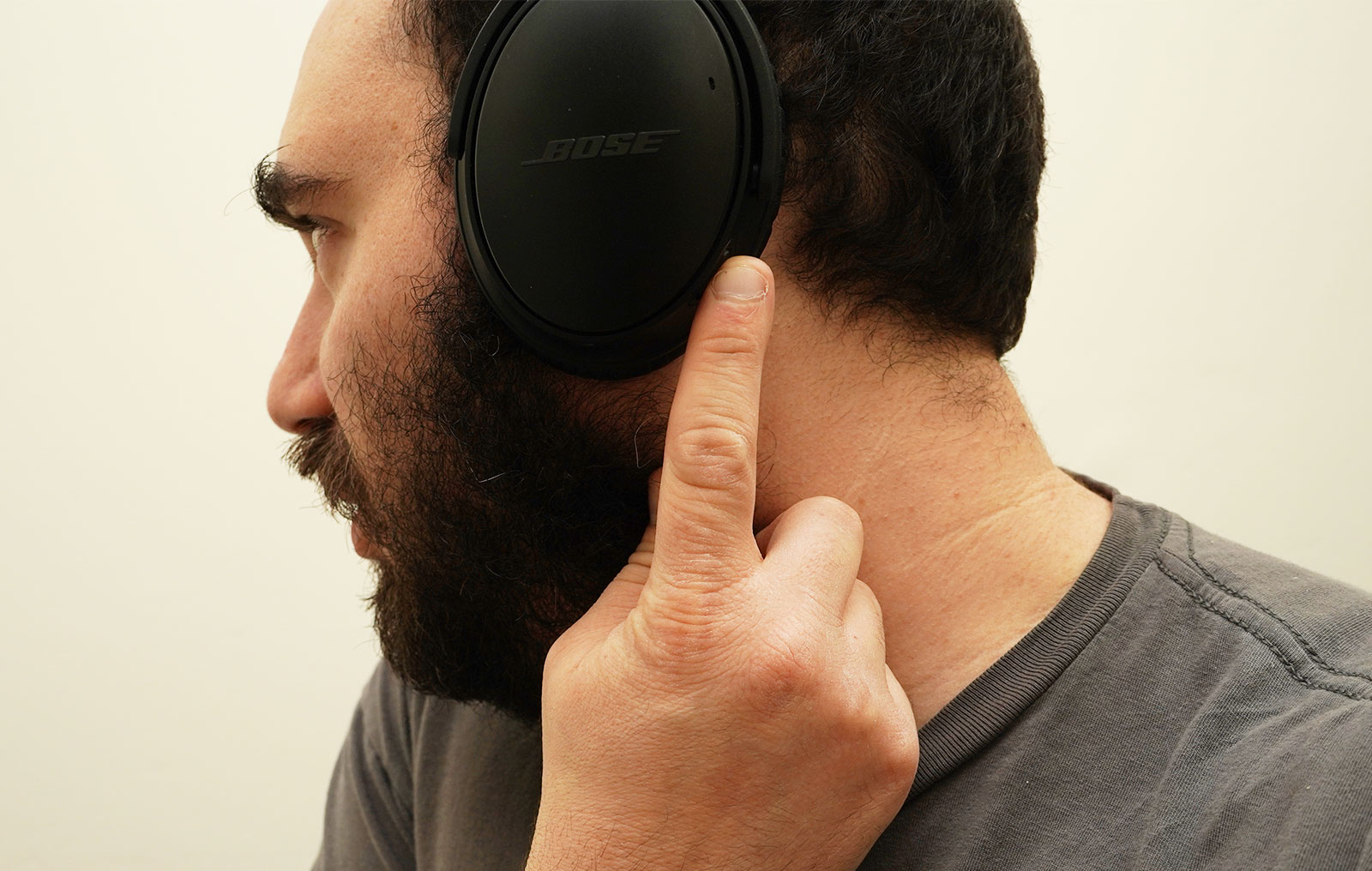 That minor design change of a button means that if you’ve seen last year’s fairly unobtrusive design with a slight curve to the can design, a simple matte silver or black, the metal “Bose” logo on each ear, and the plastic impact resistant headband with its plush Alcantara padding, you’ve seen this generation, also.