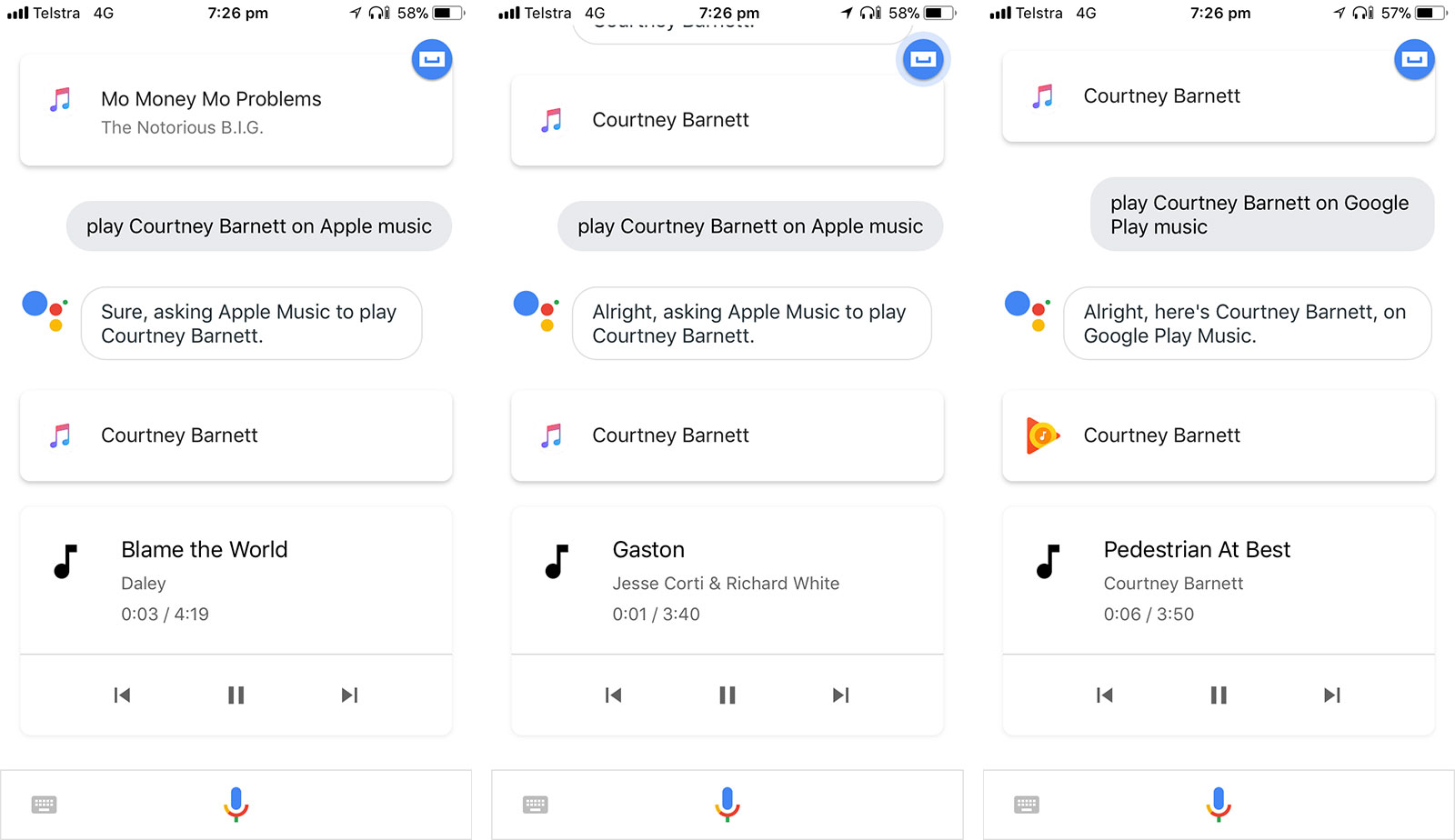 For instance, on the iPhone, the Google Assistant will usually play nicely with Apple Music, but sometimes it won’t play things through Google Play Music, revealing this amazing phrase that Google Assistant doesn’t yet know how to play with Google Play Music. Staggering.