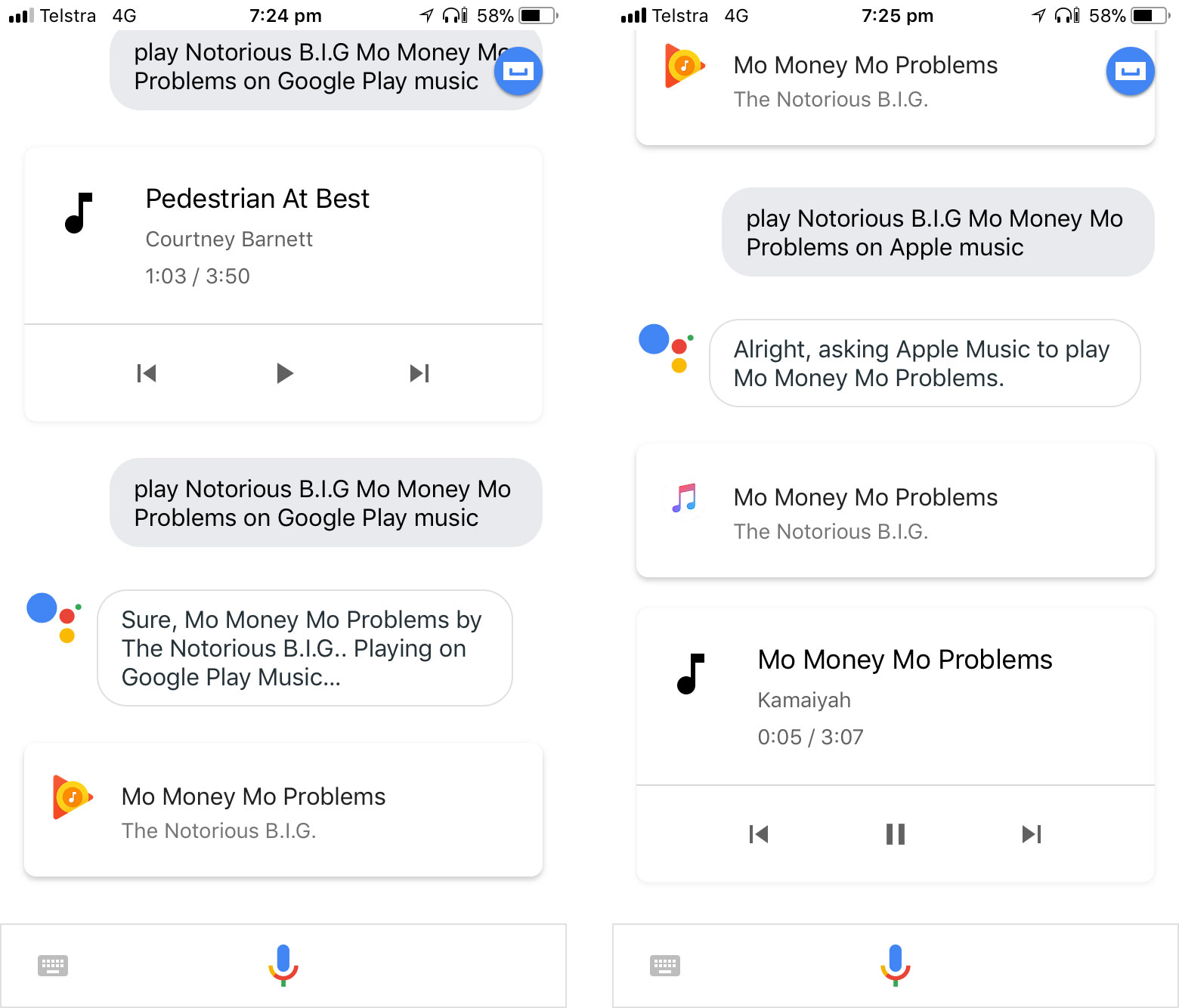 For instance, we asked it to play “Mo Money Mo Problems” by The Notorious BIG through Apple Music and had a completely different version play every time. And yet on the instance that Google Play Music did work, it played the right song.