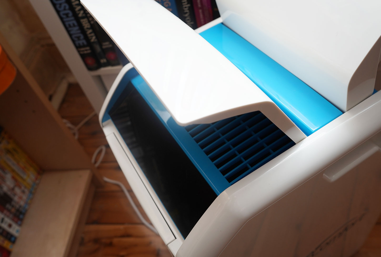 One plug is all that’s needed for the Close Comfort PC9+ , with no need to vent the air with an external hose, thanks to two flaps on the top: at the back, a small panel opens up to let hot air out.