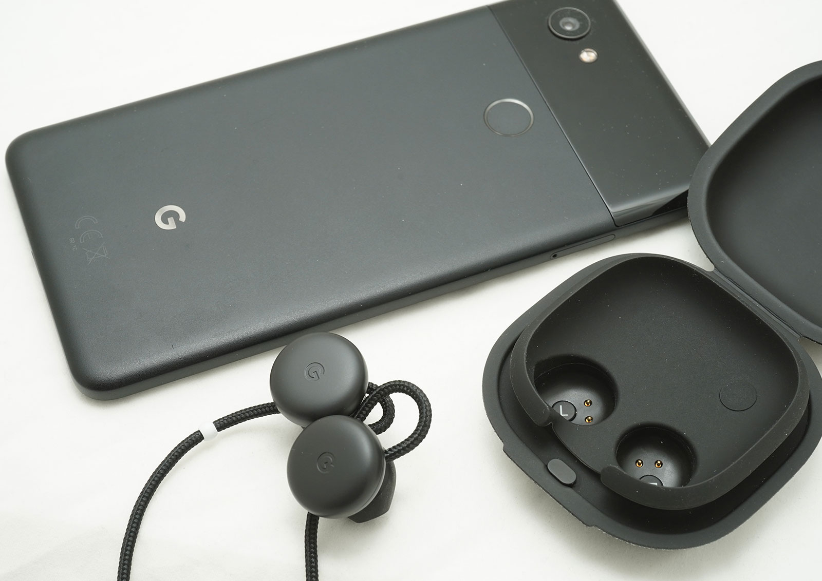 The same is actually true of the Pixel Buds on the Pixel 2 XL, and the pairing process doesn’t take long. If you don’t happen to have a Pixel phone, your pairing is handled by holding down a button on the inside of the case while the earphones are plugged into it.