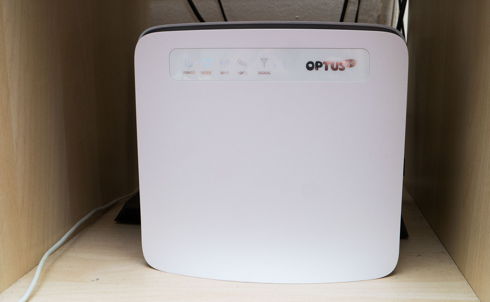 Because the modem inside is designed to connect to Optus’ 4G network, it’s a modem that doesn’t need to be anywhere near a phone line, something we’ve not really experienced before. That means you can forget about a special bookshelf or IKEA Lack holding everything, and can just set this thing up in as close a proximity to the tower as you can.
