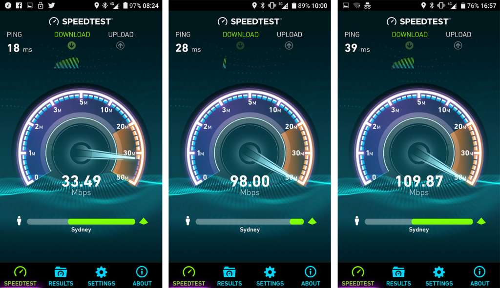 You shouldn’t have any problems watching movies or downloading when you’re in the CBD of an Australian city here, though speeds may drop the closer you get to rural Australia.