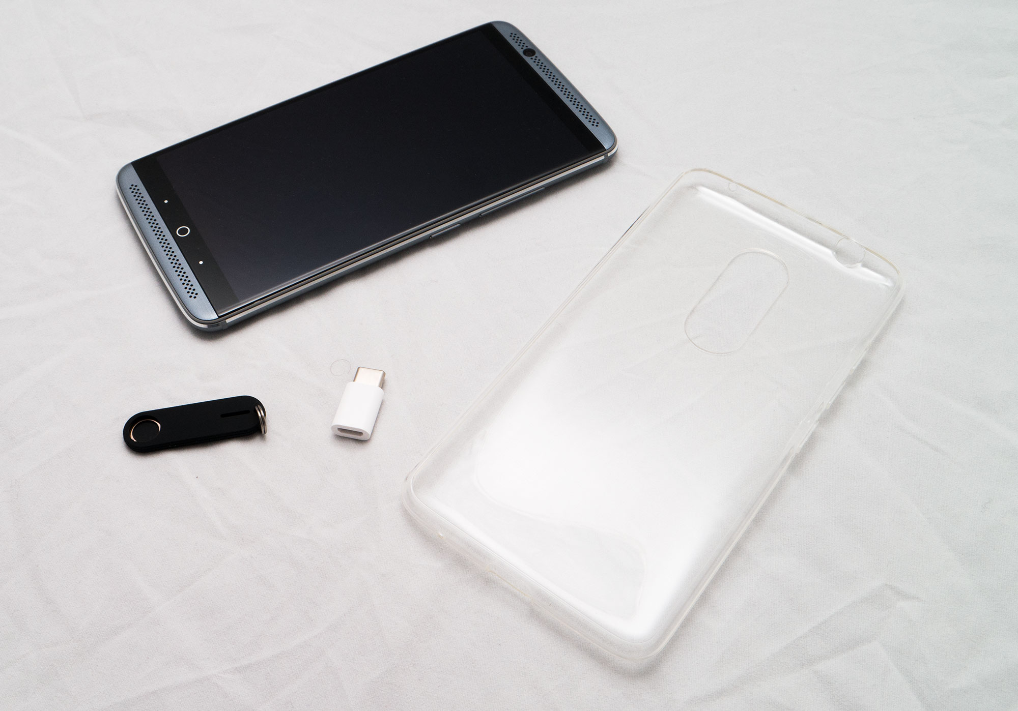 It even includes a case, a microUSB to USB Type C adaptor — ideal if you have loads of microUSB cables and not enough Type C for charging and data — and a small pin ejector tool built into a rubber keyring, handy if you want to take this sort of thing with you.