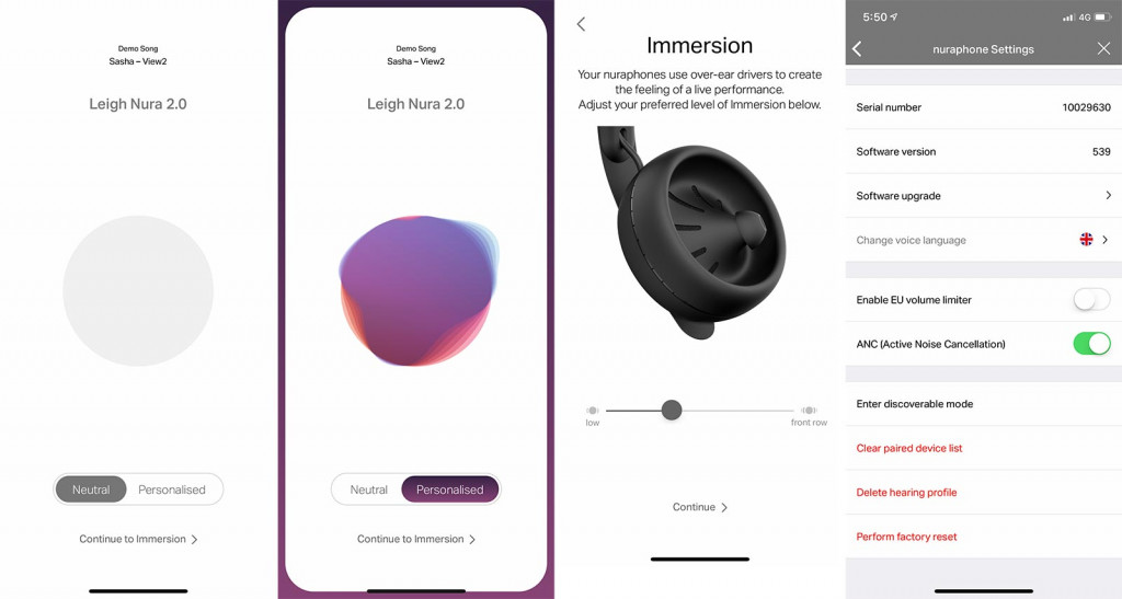 Understandably, the app is a big part of the Nuraphone experience, too, designed to analyse your hearing and provide a personalised profile. It kind of helps complete the feeling that the Nuraphones are a new kind of upgradeable headphone, not just updating its feature set, but updating your understanding of sound, as well.