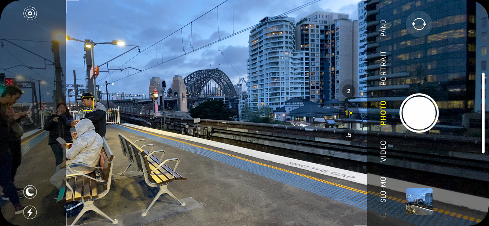 When you’re capturing in the standard lens, you might see the traditional black interface of the iPhone camera fade back to an almost transparent image, showing more of the picture beneath. This happens courtesy of the ultra-wide camera, and while it doesn’t line up perfectly, it provides an idea of what you’re potentially missing from outside of the frame when you’re composing, all to help you nail the right shot.