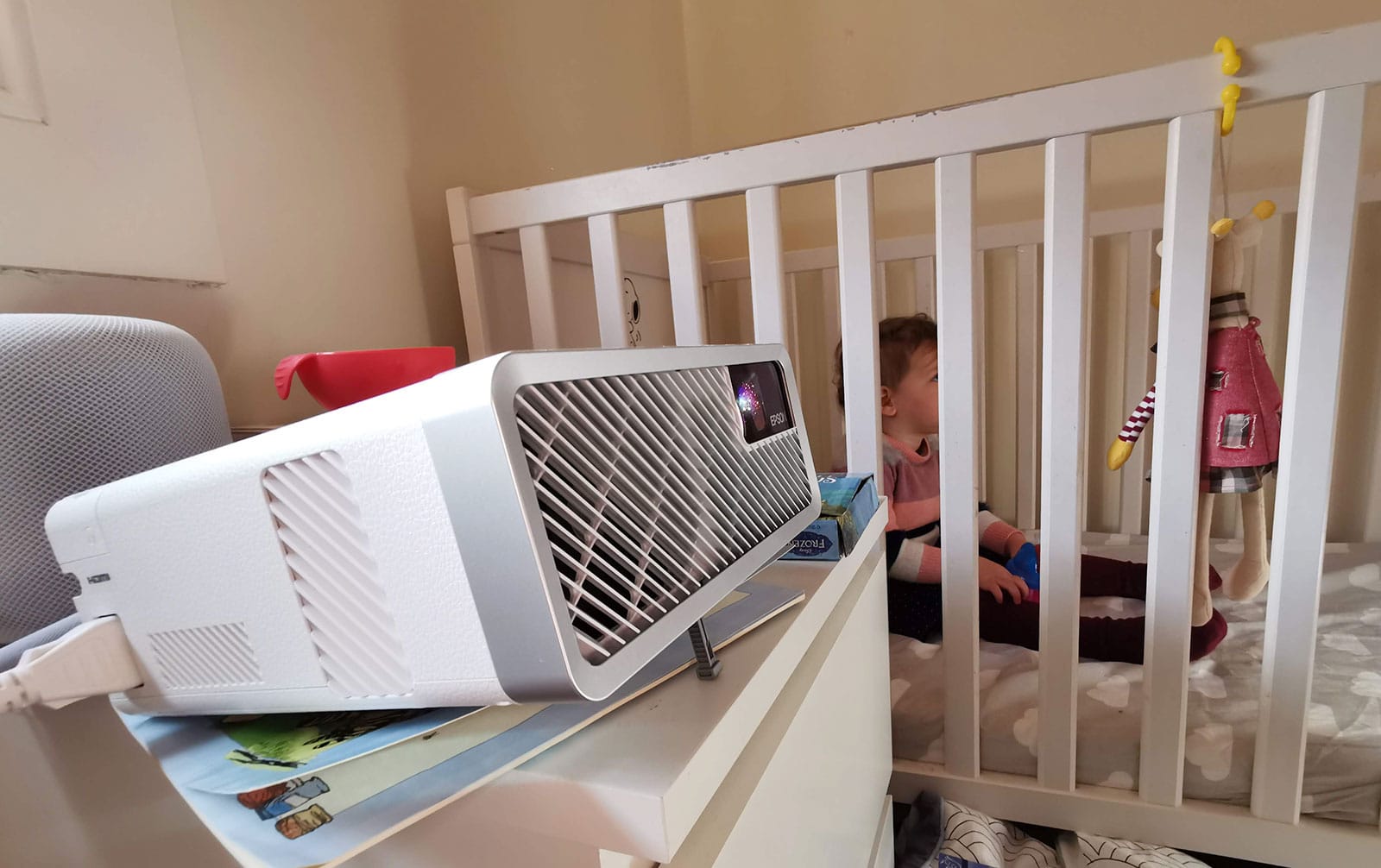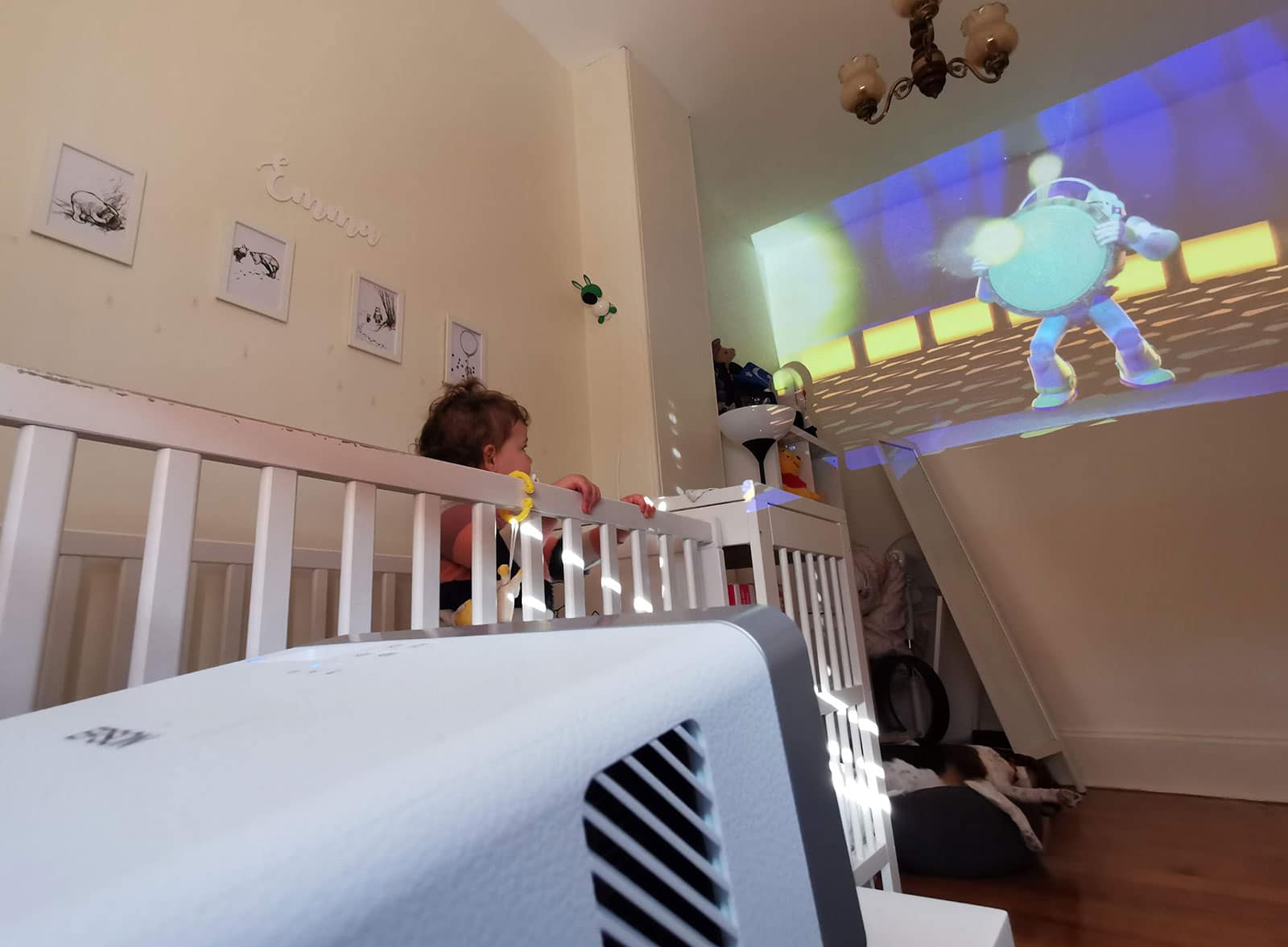 Sitting on her bedside table, next to her books toys, the Epson EF-100W lit up her wall one afternoon and evening, sending Buzz Lightyear, Nemo, Anna and Elsa, and The Wiggles. It was something very different indeed.