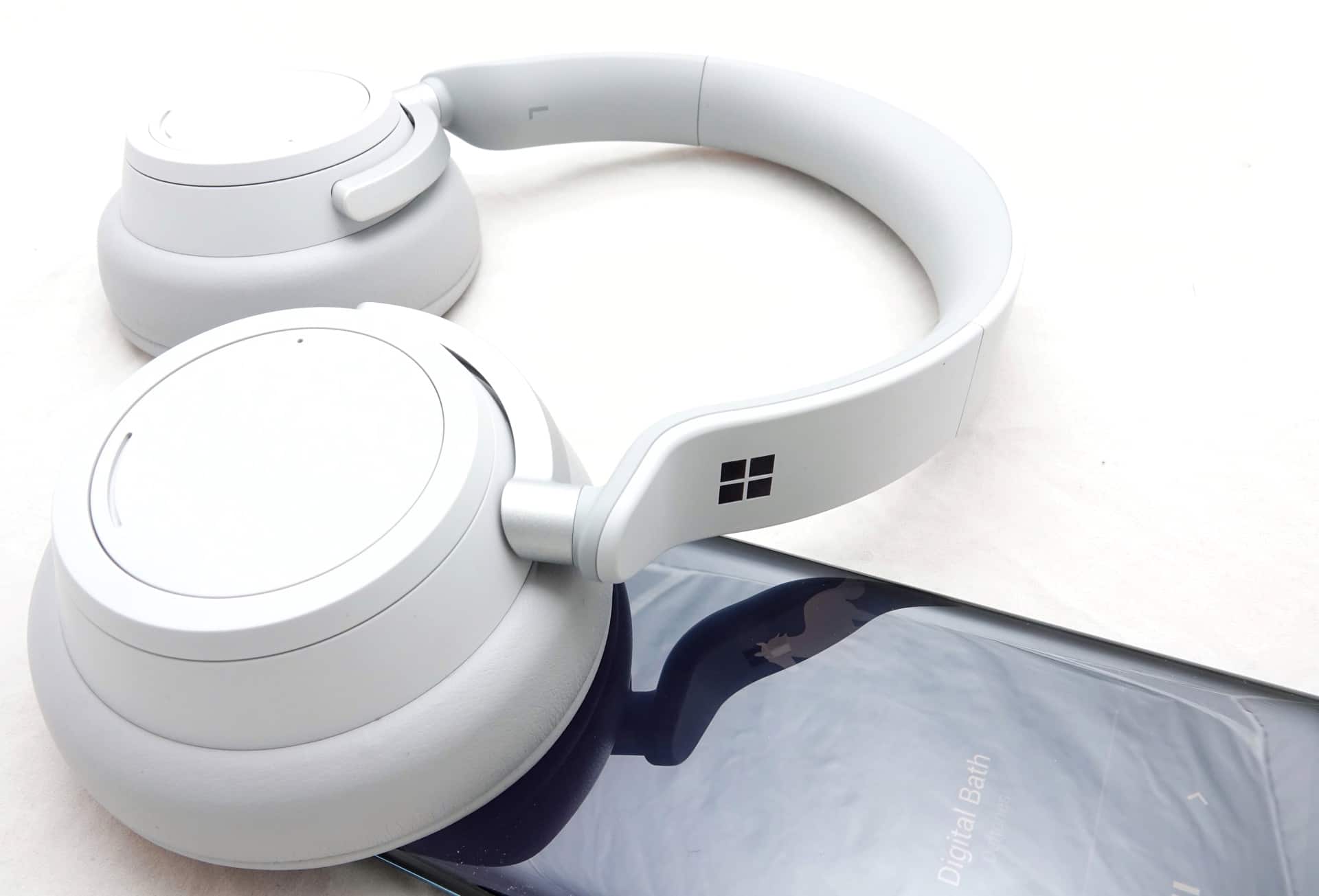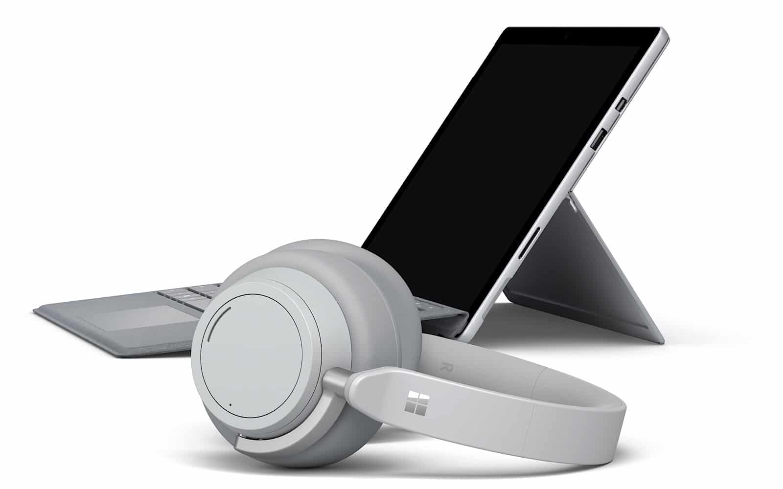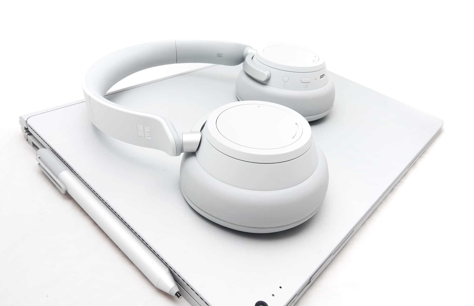 The headphones arrive in a soft grey colour scheme, which emulates the look and feel of Microsoft’s now-established Surface computers. In fact, if you have any Surface that isn’t the black model, when you rest the headphones on the back against the kickstand or on top of a Surface Book, the whole thing looks schmick and colour-coordinated.