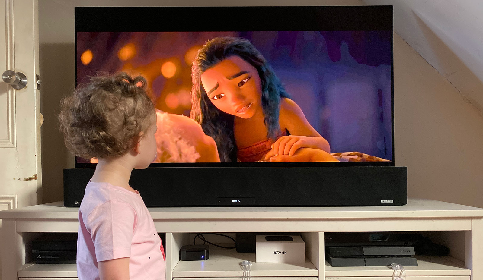 It doesn’t take long to do, but a few minutes of interesting sounds that might disturb a sleeping baby ever so slightly, you’ll find a sound mode called Ambeo that not only bounces sound around your room to create the 3D sound experience, but a way of upscaling the audio to make it happen.