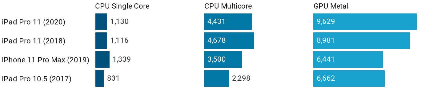 Seeing that performance first hand compared to its sibling, however, is next to impossible. Benchmarking reveals a notable improvement on the graphical side of things compared to both the 2018 A12X iPad Pro and even the iPhone 11 range with the A13 inside, while the CPU is strong.