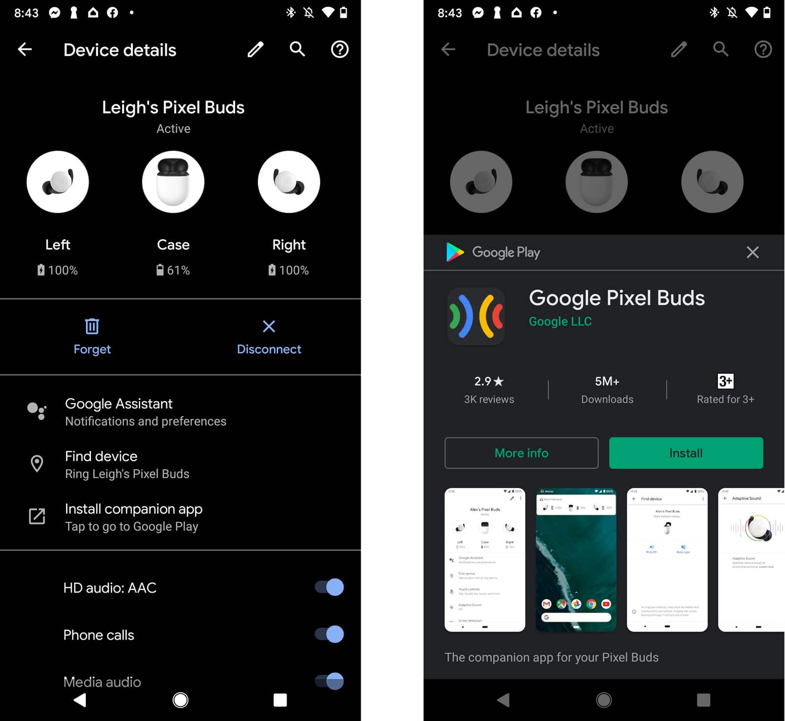 You’ll be able to swipe forward and backward for volume control, tap and double tap for play and skip track, and then use the app for Android devices. On Google Pixel phones, the app is built into the operating system, but on Android you need to download the app.