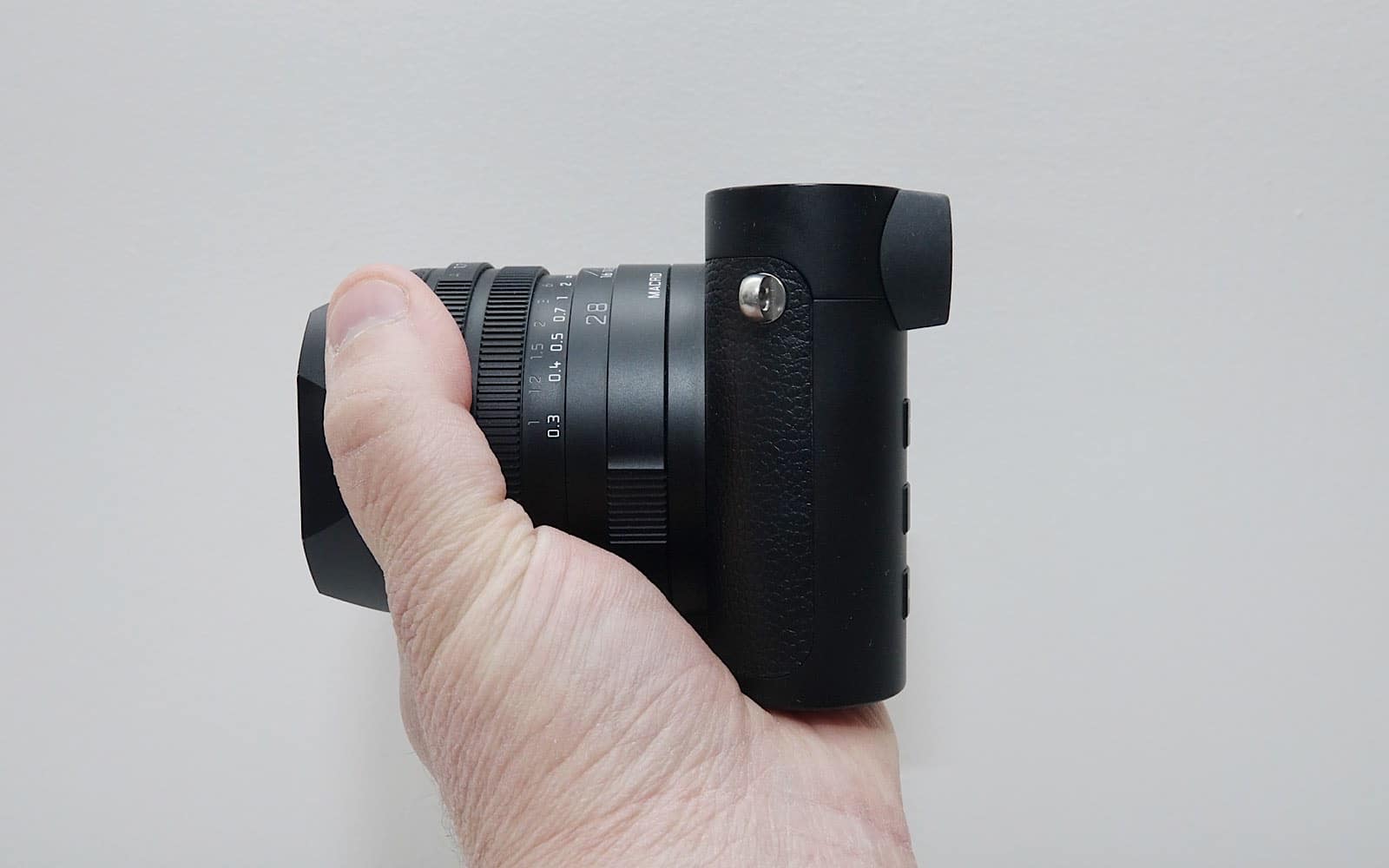 Most people will hold the right side with the right hand, and to accommodate, Leica has included a curved indent where the thumb should go moulded into the metal body, helping your hands to feel at ease as you hold this camera.