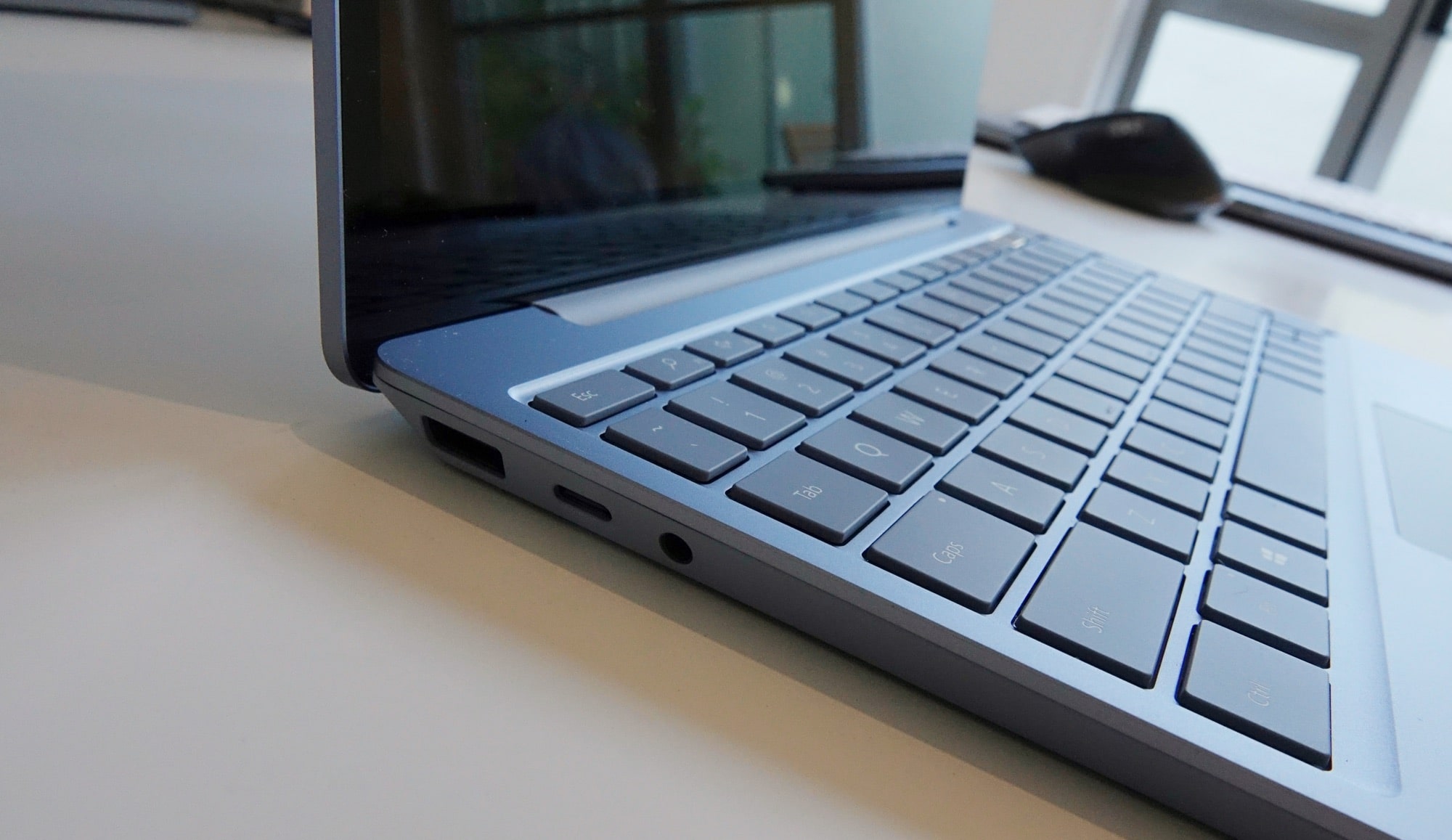 There are a total of four ports on the Surface Laptop Go, with one USB Type C, one USB Type A (the rectangular one), a 3.5mm headphone jack, and Microsoft’s proprietary Surface Connect port, though it can be charged through either the Surface Connect or the USB Type C port.