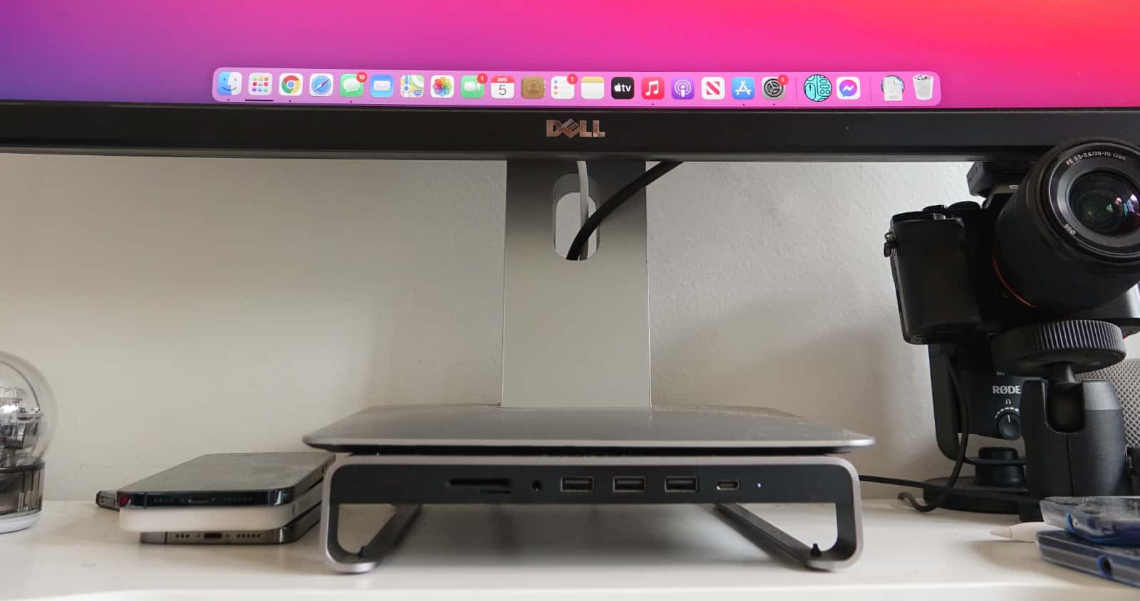 We don’t typically use an iMac, even if we review them, and found the Satechi Type-C iMac stand allowed us to hold up monitors, making it a handy way of lifting the regular massive work-from-home screen we’re using in our Dell Ultrawide.