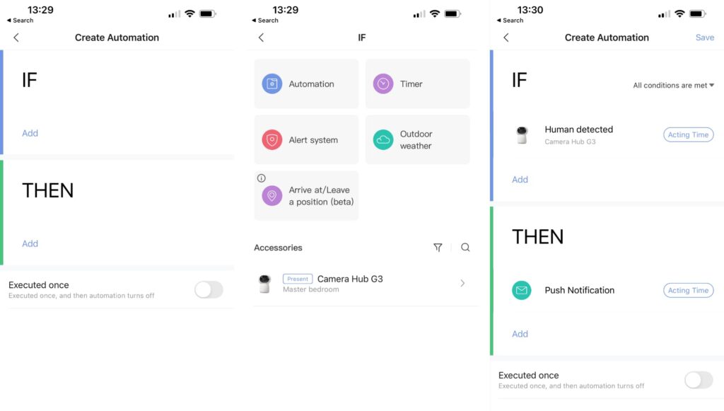 Aqara has also left out pre-built automations, so you kind of have to do everything yourself. Uploading a picture or two of your family for the camera to track is easy enough, but getting it to send an alert or record a video becomes you learning Aqara’s own take on If This Then That, which is easy enough, but time consuming. Prebuilt automations would be super handy here, but they just don’t seem to exist in the Aqara app.