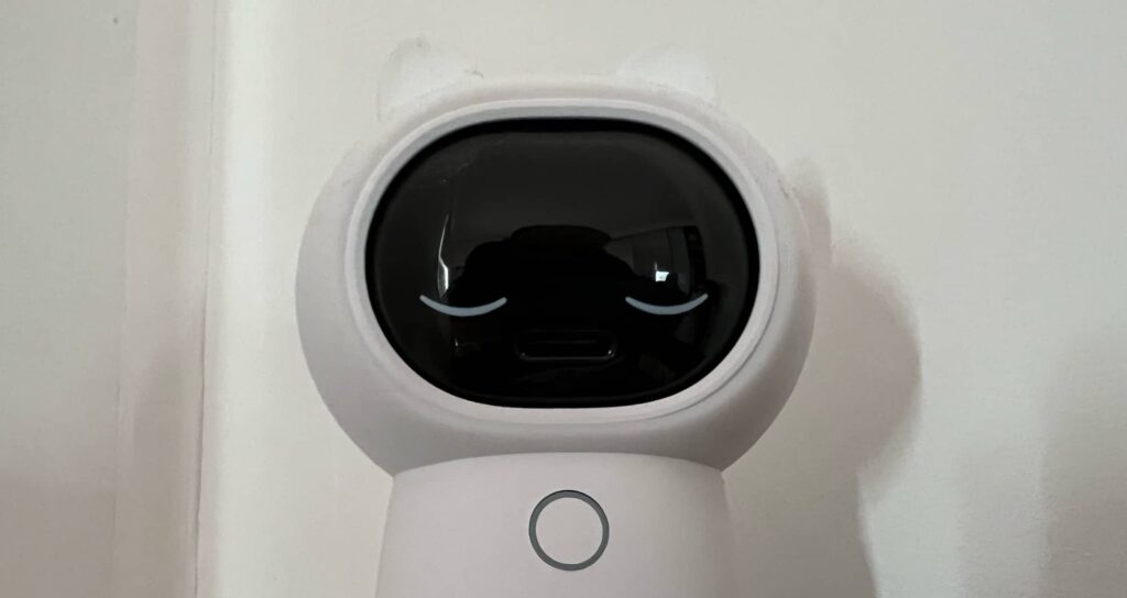 When you don’t want the camera to be doing anything, it’ll even shut up shop, tilting the camera so far down that it’s hidden with only a sleeping face left on the camera. Cute.