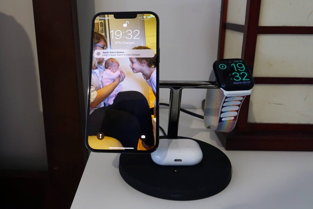 Ultimately, we found the Boost Charge Pro 3-in-1 worked with an iPhone 12 or iPhone 13 model, an Apple Watch, and any pair of wireless in-ears with a wirelessly charged case, which covers quite a few gadgets.