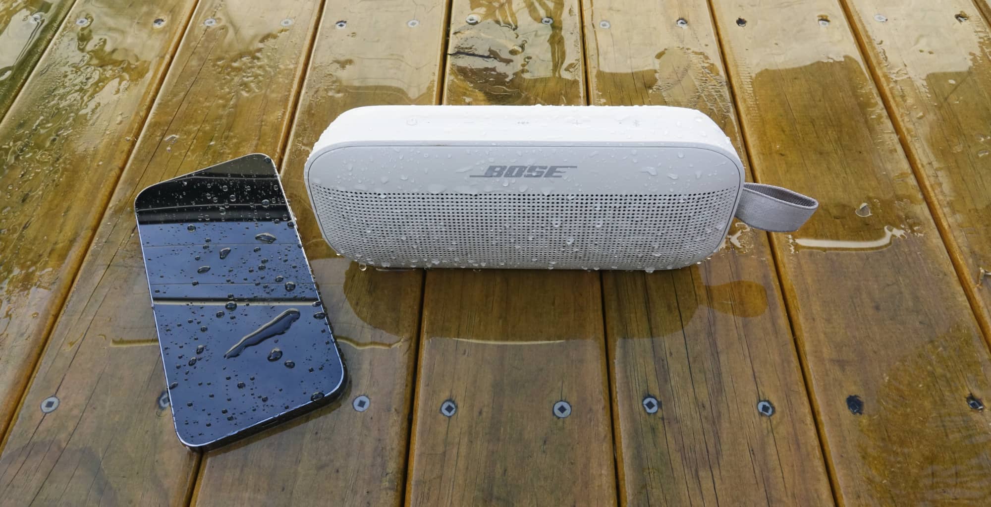 Unsurprisingly, throwing a lot of water on the Flex can throw the sound out quite a bit. That’s not a total shock: water and speakers don’t go together tremendously well, and while this one will survive an outing, it won’t necessarily play the sound as well when water graces its grill.