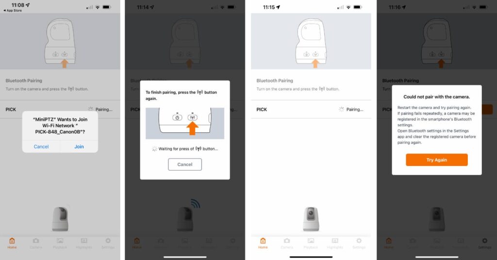 In theory, it’s easy: connect to the wireless network of the Canon Pick PTZ camera, and run through the connection process. Fair enough.