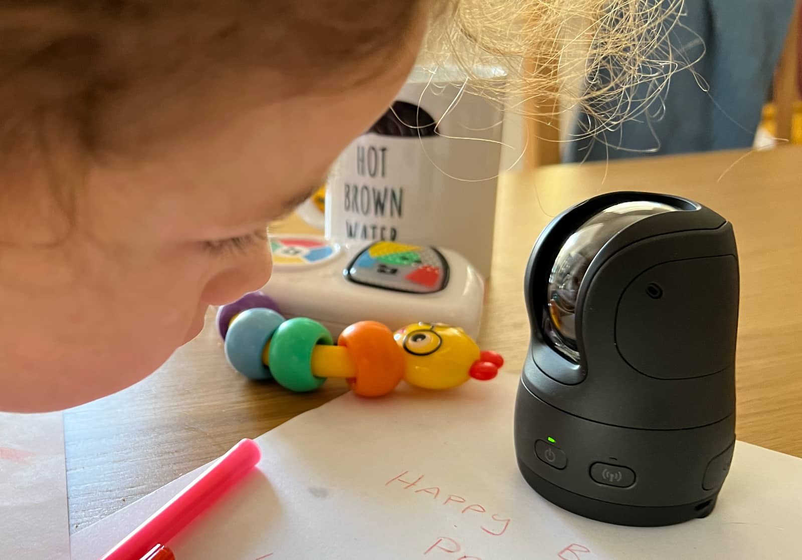 It can be controlled by an app on iPhone and Android, twisting on its rotor to match where you want to capture, and zooming if need be. There’s also some voice control, which responds with cute chips, and you can also set the camera up to automatically track faces, supporting up to 12 registered images (faces), and tracking what it recognises.