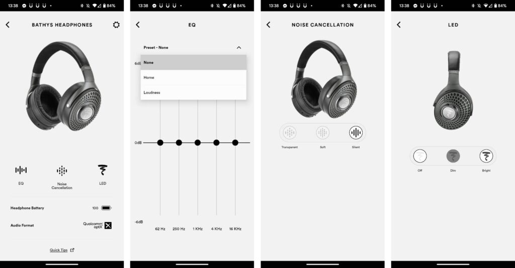 There’s also that app, but it’s not that big of a deal if we’re honest. The most useful thing it can do is turn down the brightness of the light-up Focal logo on the side, but everything else is about playing with the EQ and a few presets, changing the noise cancellation mode between full, transparency, and off, and generally just setting up which voice assistant of choice you want to use.