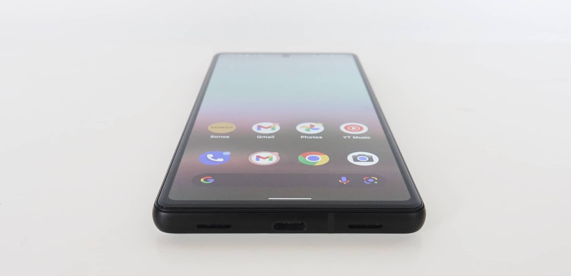 The look is more like the Pixel 6 with slim bezels on the screen, while the back uses the same style of crossbar element for the camera, pushing the back off from a table and giving the phone a different look.