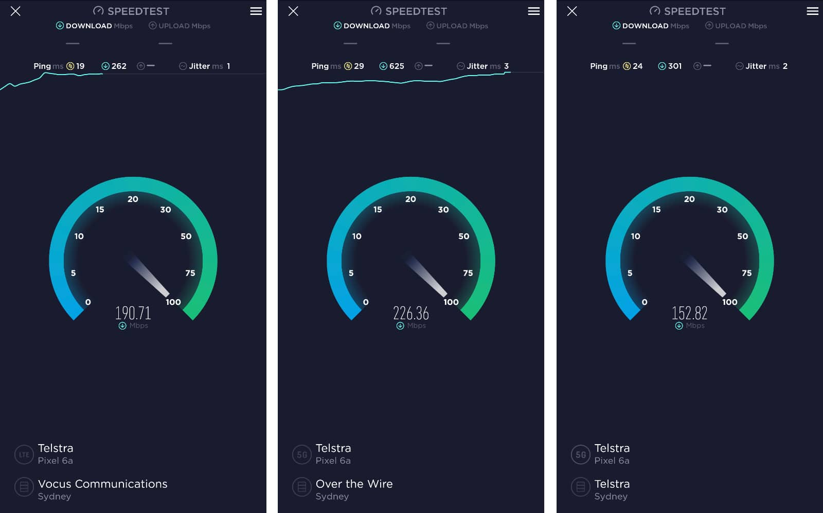 Our testing of the Pixel 6a in Sydney, Australia found speeds ranging from 100 to 300Mbps mostly, though you may be able to do better.