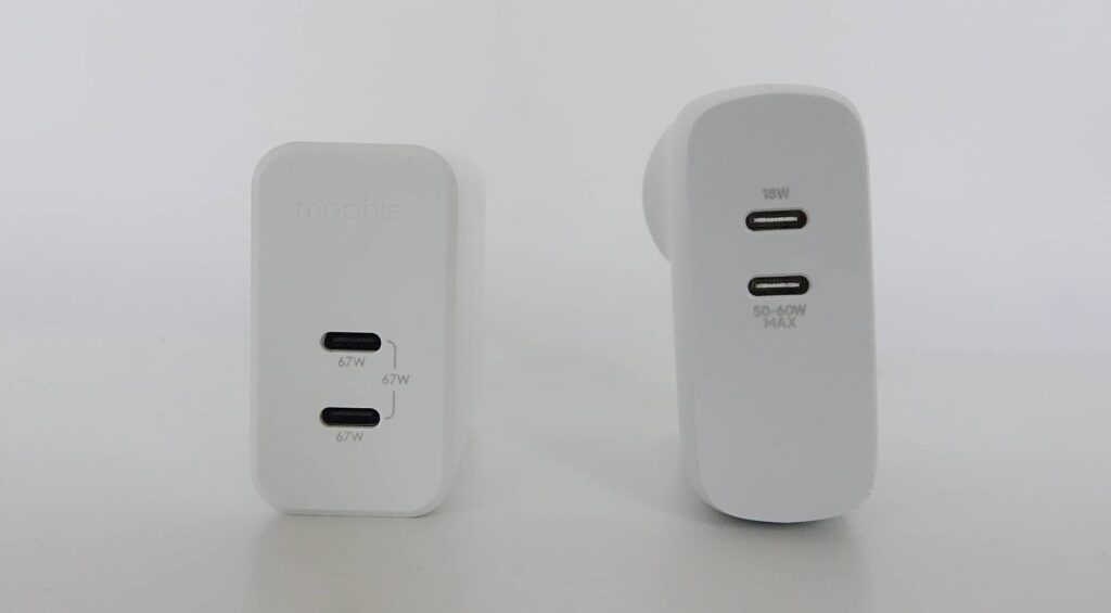 About the only different between Mophie’s charger and other GaN near-70 watt chargers is perhaps the way the ports are configured.