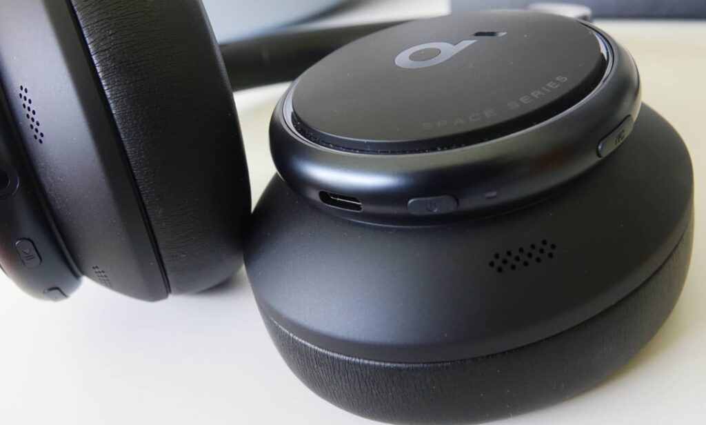 Circular pads with a slightly ear-hugging circumaural (around-the-ear) design is on display here, with imitation leather on the pads and band, plus a rather noticeable “d” from the Soundcore logo, which looks a little like the “b” from “Beats”, one of its clear rivals.