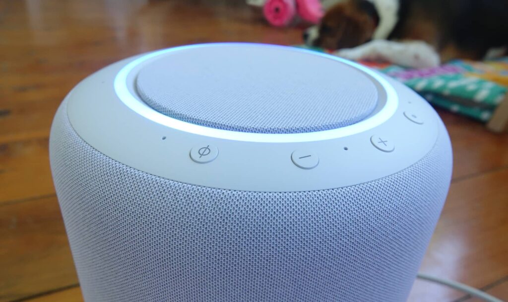 That’s probably unfair, because quite a few speakers look this way, but the Studio sticks with the old look that was a much taller and wider original Echo Dot rather than the newer spherical speakers you can find in the Echo range.