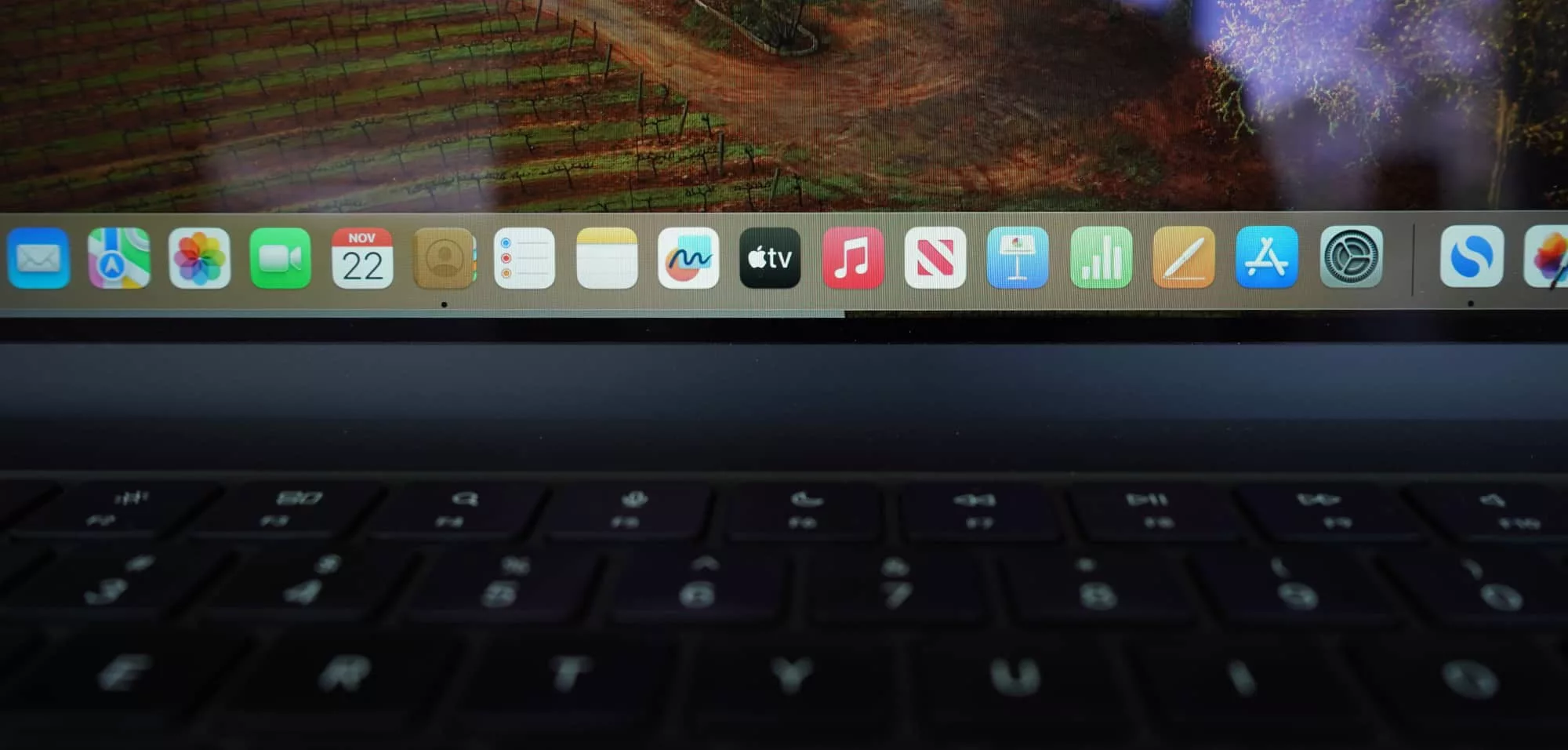 Like other current MacBook variations, there’s a shelf cut out for the camera, giving you more of the screen in the frame, which helps to give you that little bit more to look at.