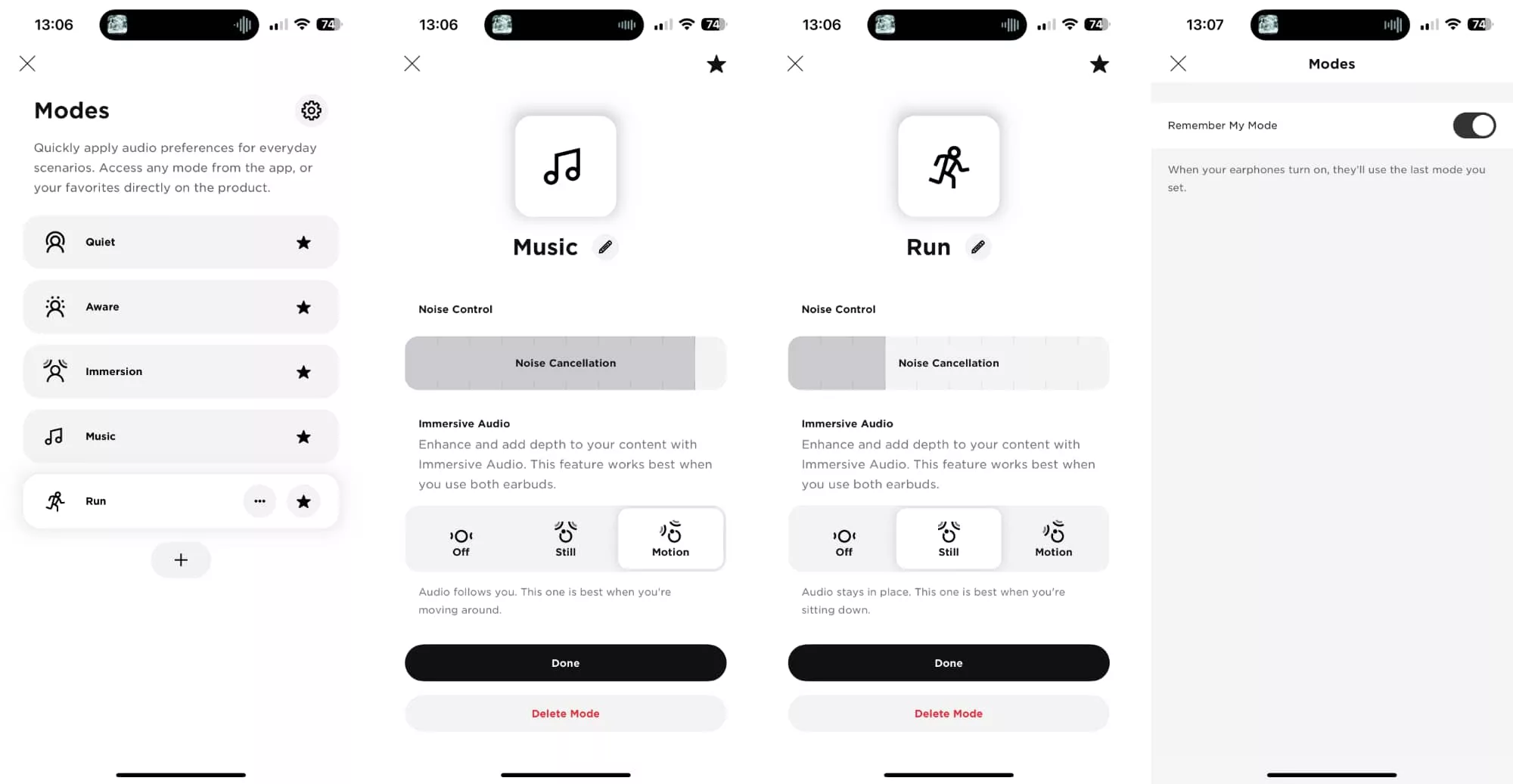 You can even create custom noise cancellation modes with custom immersion modes, using your physical touch and hold functions to cycle through them. We love not having to reach for the phone when we don’t need to. That’s always a win.