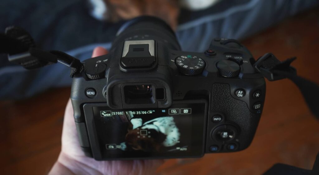 While there’s no top-down LCD to let you see what mode you’re in, Canon’s use of a vari-angle touchscreen kind of takes care of that, as does its positioning of key controls.