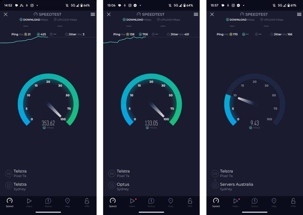 Rather, you'll find plenty of 5G performance on offer provided your mobile provider has plenty waiting for you to take advantage of. For proof, in Sydney on the Telstra network by way of Mate, we clocked up speeds as much as 350Mbps, though you may get more depending on what your telco is offering at the time.
