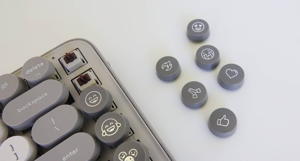 It’s not that each key cap is automatically matched to an emoji, but more that the software is preconfigured to handle the emoji at each spot using the Logi Options software, the same stuff you can use for the MX Master mice and Flow, which transfers an MX Master mouse and keyboard across one computer to another.