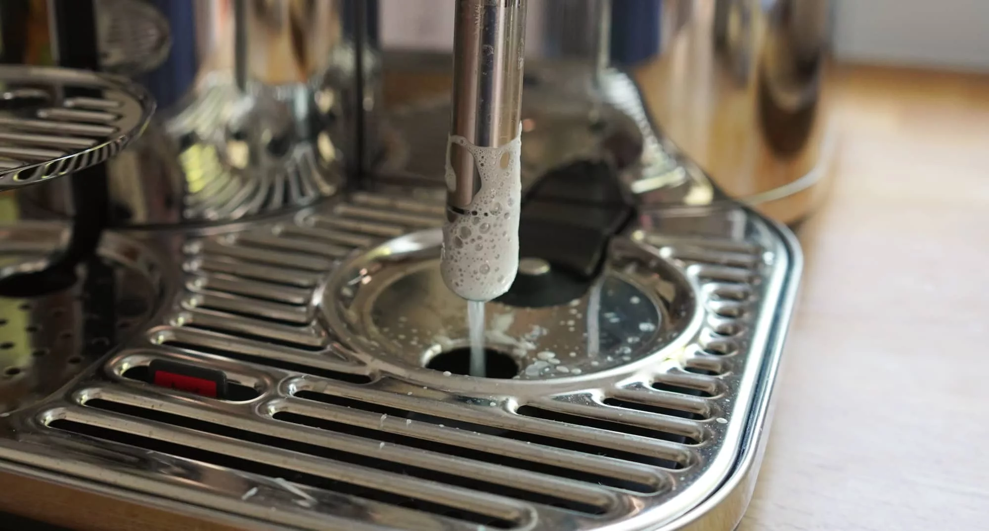 When you’re done, lifting the steam wand out will initiate an auto-clean process, spraying water into the tray, forcing you to clean that part more regularly.