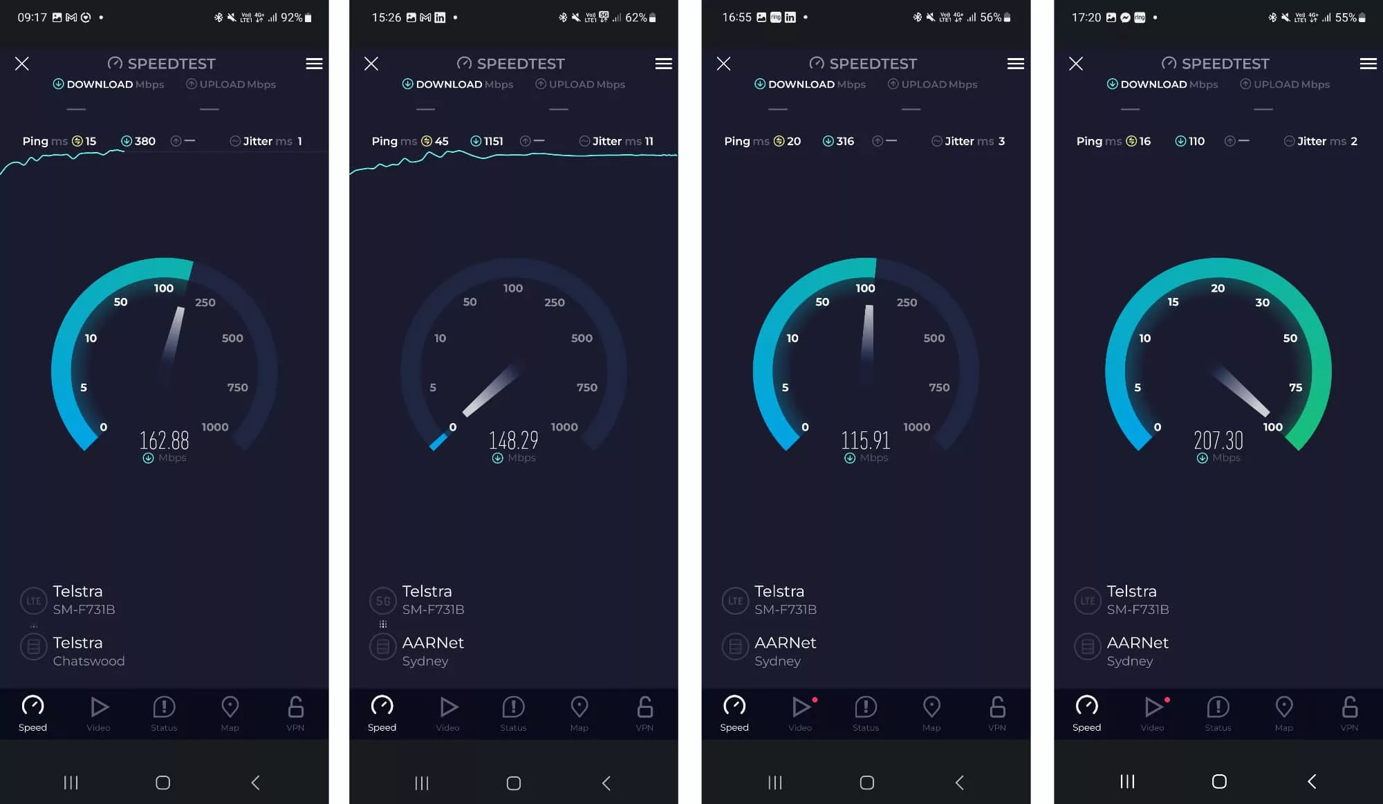 Tested in Sydney, Australia on the Telstra 5G network by way of Mate (which limits the maximum speed), we found download rates as fast as 208Mbps, which is decent enough, though your results may vary. There are a lot of factors that determine mobile speeds, and so while you might see higher speeds, you might also see lower ones, as well.