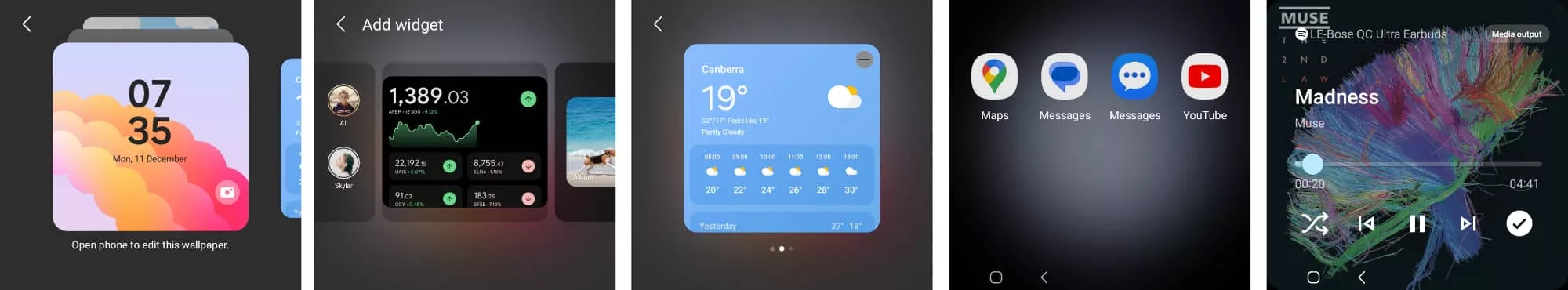 While the Fold 5 (and previous Fold models) offer a full Android experience for the front-facing screen, the Flip 5’s extra front screen is a little more limited, giving you a handful of apps as well as messaging notifications.