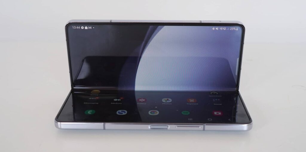 Folded and collapsed, the Fold 5 has a 6.2 inch screen on the front that lets you use the phone like any other touchscreen phone. And frankly, throughout our review time with the Fold, it’s the thing you’re most likely to do. We spent most of our Fold 5 review in this form-factor, because it was most like using any other phone and required little to no effort.