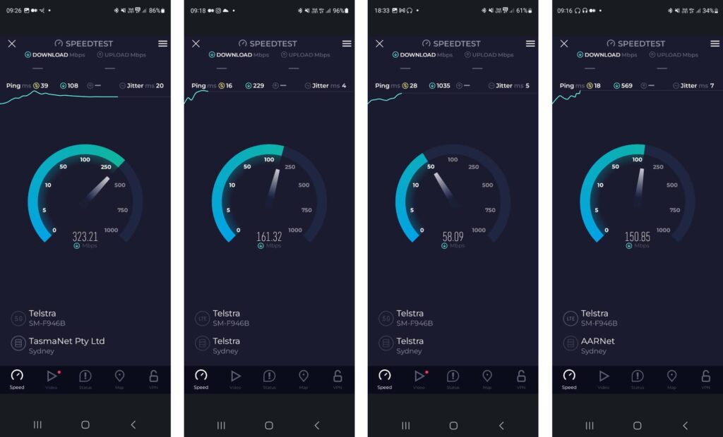 Tested on the Telstra 5G network in Sydney by way of Mate, while our speeds often capped out at 250Mbps, we found speeds before the limiter kicked in hit beyond it, maxing out at 360Mbps in our tests. Not bad.