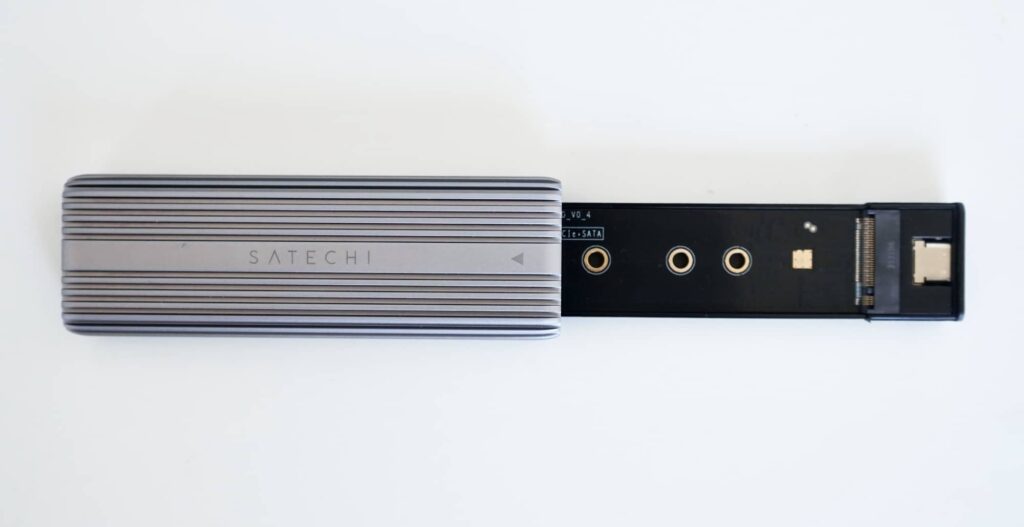 Quite a few companies make these, including Samsung and Seagate, to name a few, though you won’t be able to use thicker SSDs with large heat-sinks attached. If you do have an SSD with a meaty cooling solution on the side, you’ll need to remove that cooler before throwing it into the Satechi case.